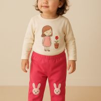 شلواردورو پنبه دخترانه با تیکه دوزی خرگوش 1سال و3سال