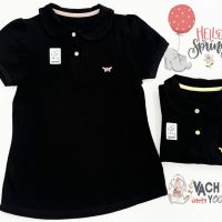 تیشرت دخترانه مشکی دکمه خور گلدوزی پروانه10-14 سال