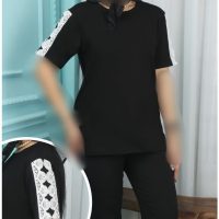 تیشرت مجلسی مشکی زنانه سرشانه گیپور دارآستین کیمینو
