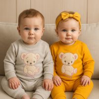 بادی شلوار نوزادی گلدوزی طرح خرس