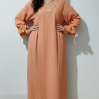 پیراهن پاییزه گلدوزی زنانه مناسب تا سایز 44