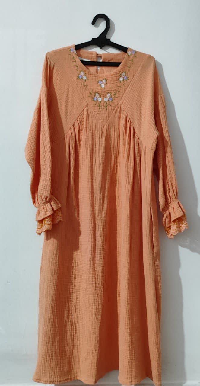 پیراهن پاییزه گلدوزی زنانه مناسب تا سایز 44