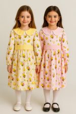 پیراهن دخترانه طرح زنبور و عسل ۲ تا ۸ سال