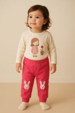 شلواردورو پنبه دخترانه با تیکه دوزی خرگوش 1سال و3سال