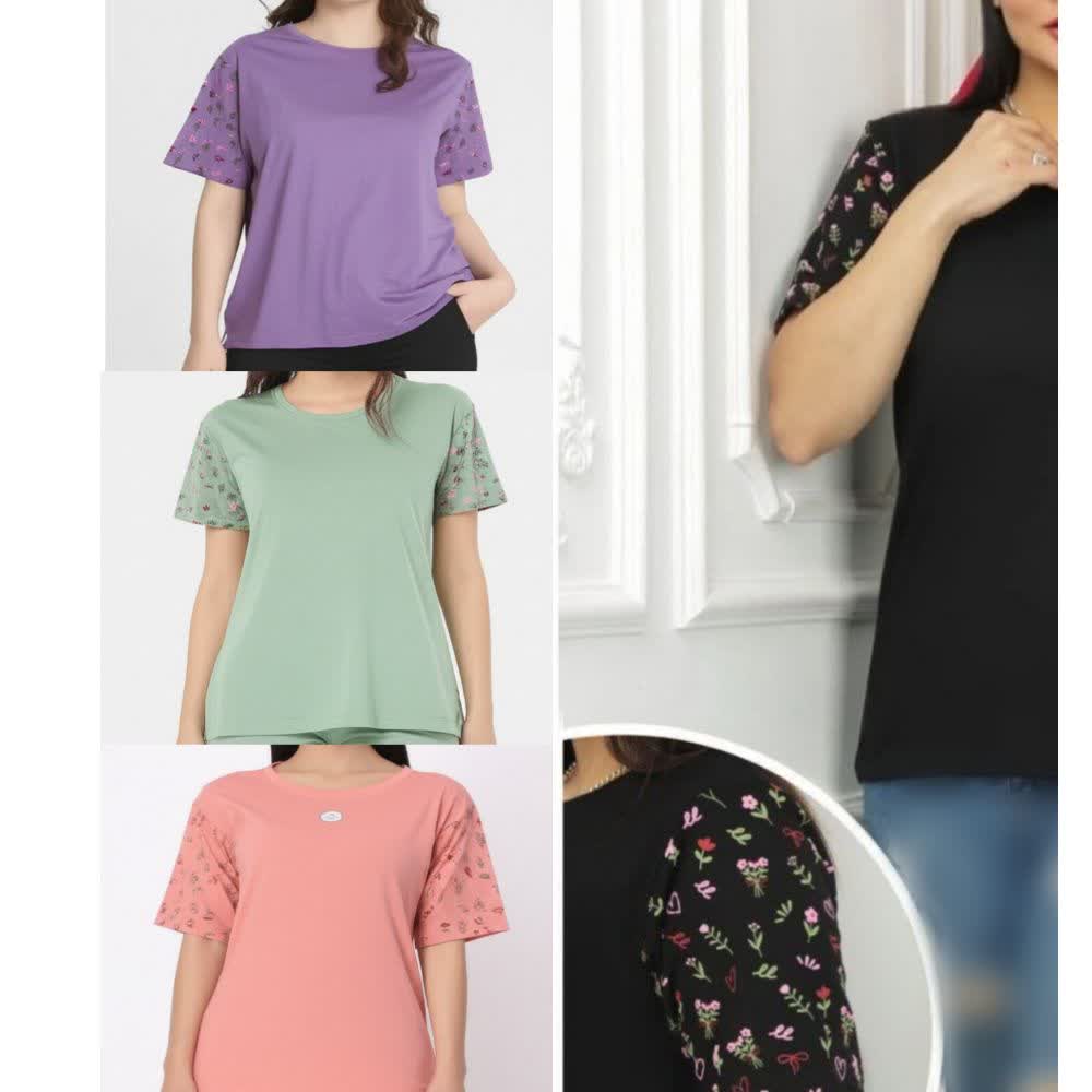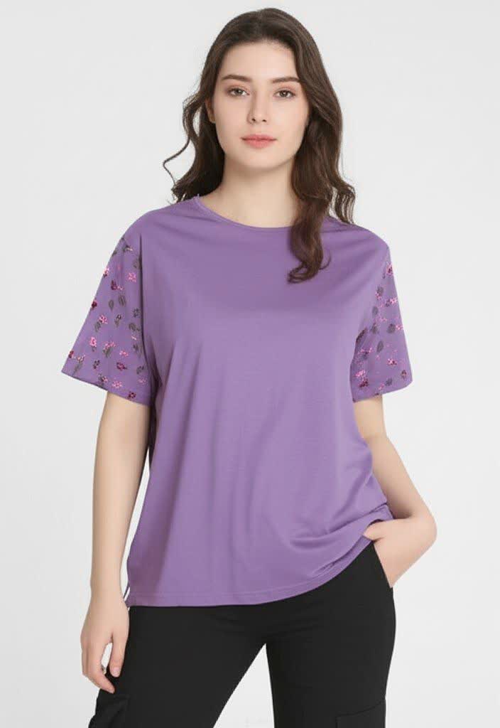 تیشرت زنانه آستین چاپ گل