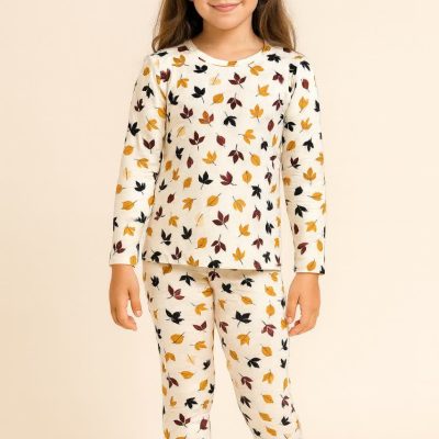 ست بلوز شلوار دخترانه طرح برگ پاییزه