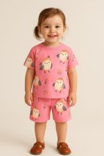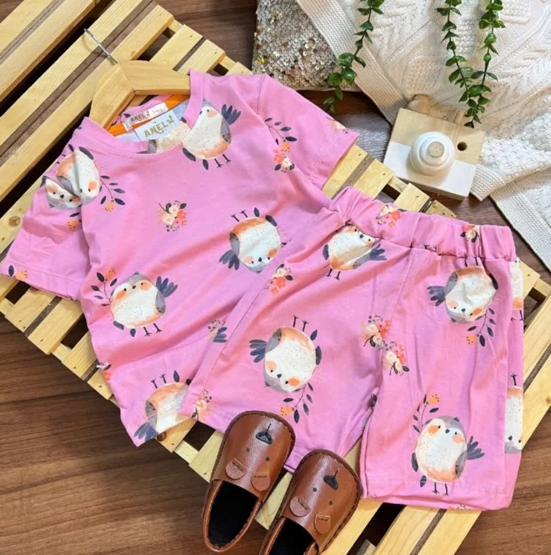 تیشرت شلوارک دخترانه طرح گنجشک سایز۴۵