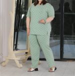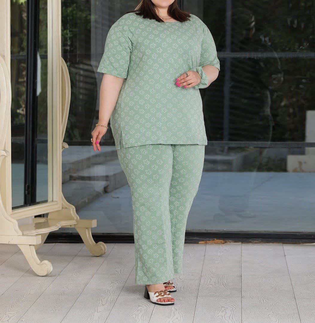 ست راحتی زنانه سایز بزرگ سبز روشن طرح گل