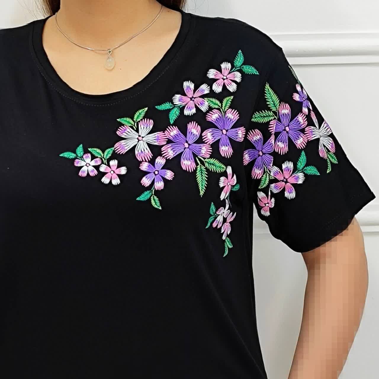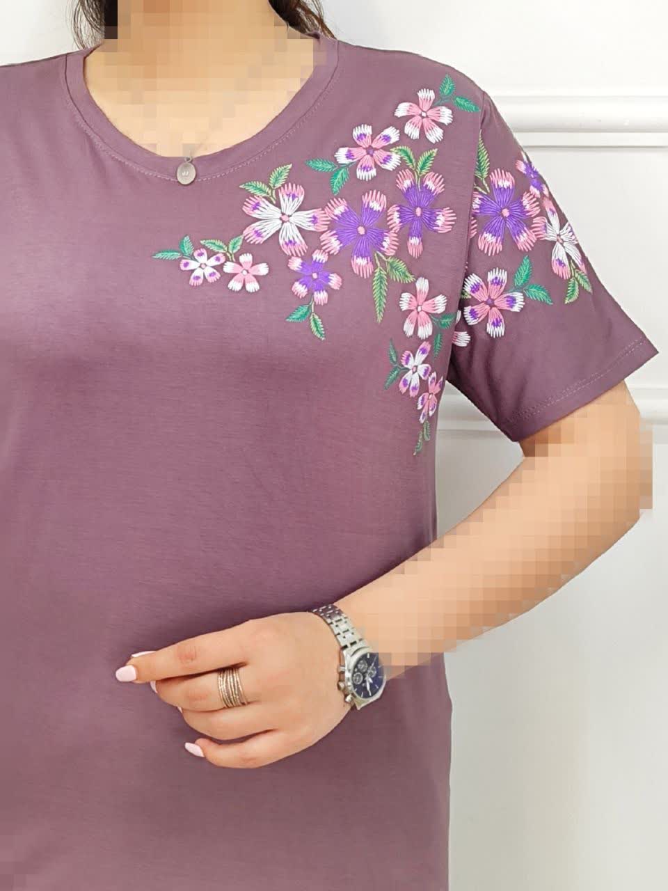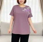 تیشرت زنانه چاپ گل بنفشه مناسب سایز۴۶ تا سایز ۵۲