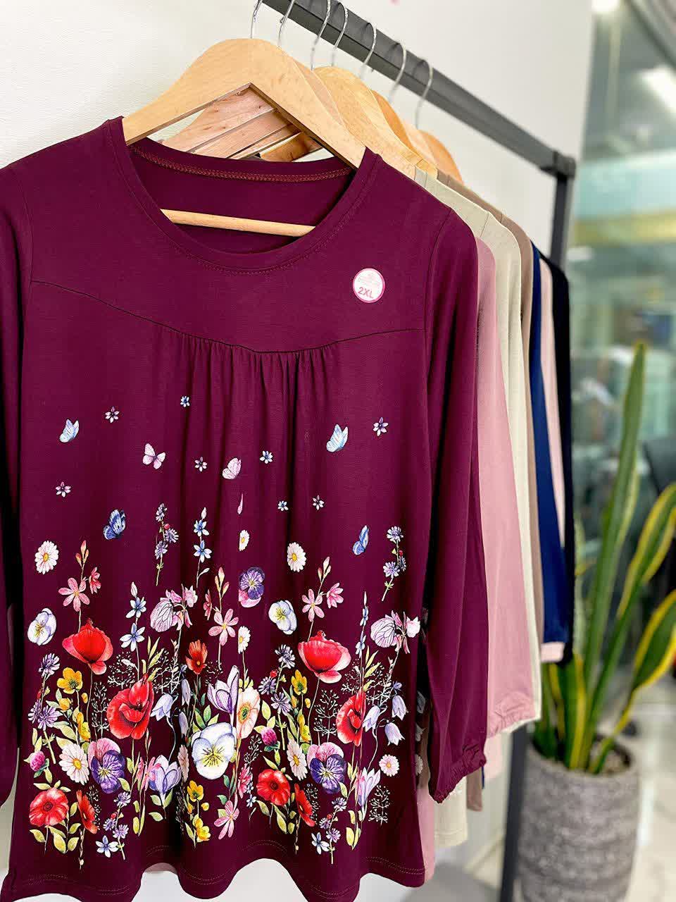 برچسب: #زنانه_سایز۴۶, #زنانه_سایز۴۸, #زنانه_سایز۵۰, #زنانه_سایز۵۲, بلوز چاپ گل, بلوز راحتی زنانه, بلوز سینه چین دار, تیشرت آستین بلند زنانه