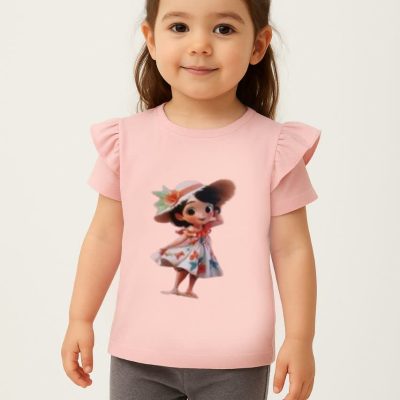 تیشرت تک دخترانه طرح 3 طرح عروسک